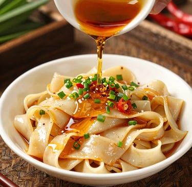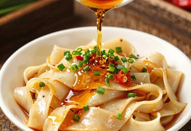 Tallarines biangbiang hechos a mano con ingredientes frescos y auténticos.